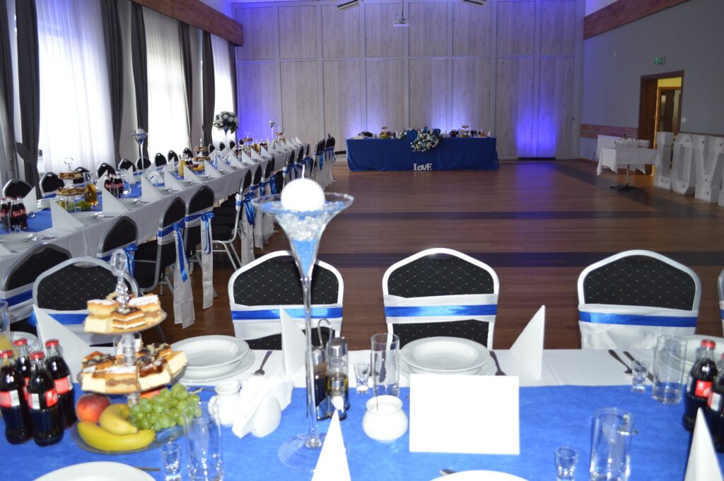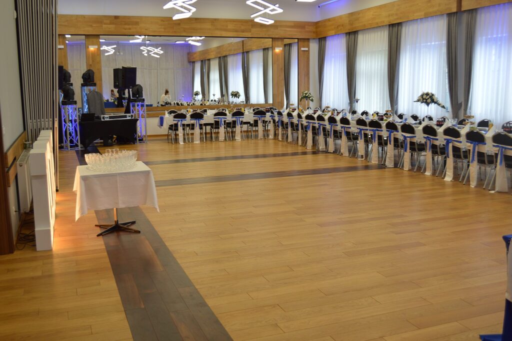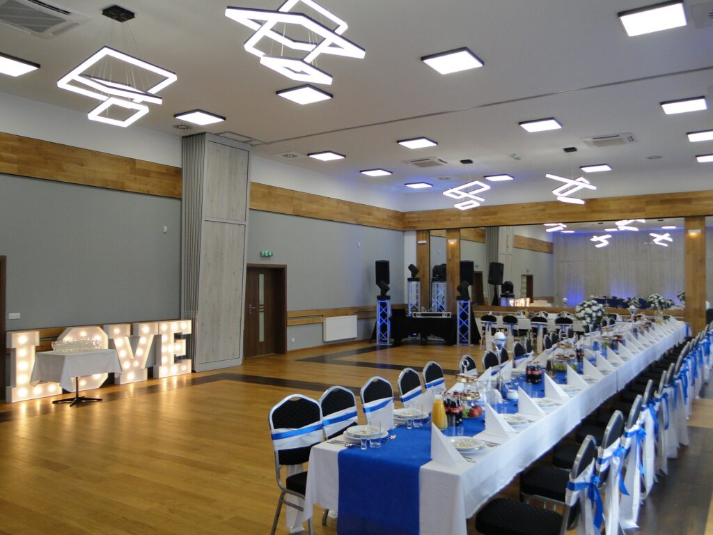 Do dyspozycji naszych Gości oddajemy unikalne i przestronne w pełni klimatyzowane wnętrze o wysokim standardzie wyposażenia jak również nowoczesne zaplecze cateringowe wyposażone w najnowocześniejsze urządzenia gastronomiczne. Aby móc dostosować wynajmowaną powierzchnię do Państwa potrzeb, dzięki systemowi ścian przesuwnych, istnieje możliwość podziału sali na dwie lub trzy części. Obiekt posiada również przestronne miejsca parkingowe, oraz pełny monitoring, a niewątpliwie jego zaletą jest dogodny dojazd i usytuowanie.